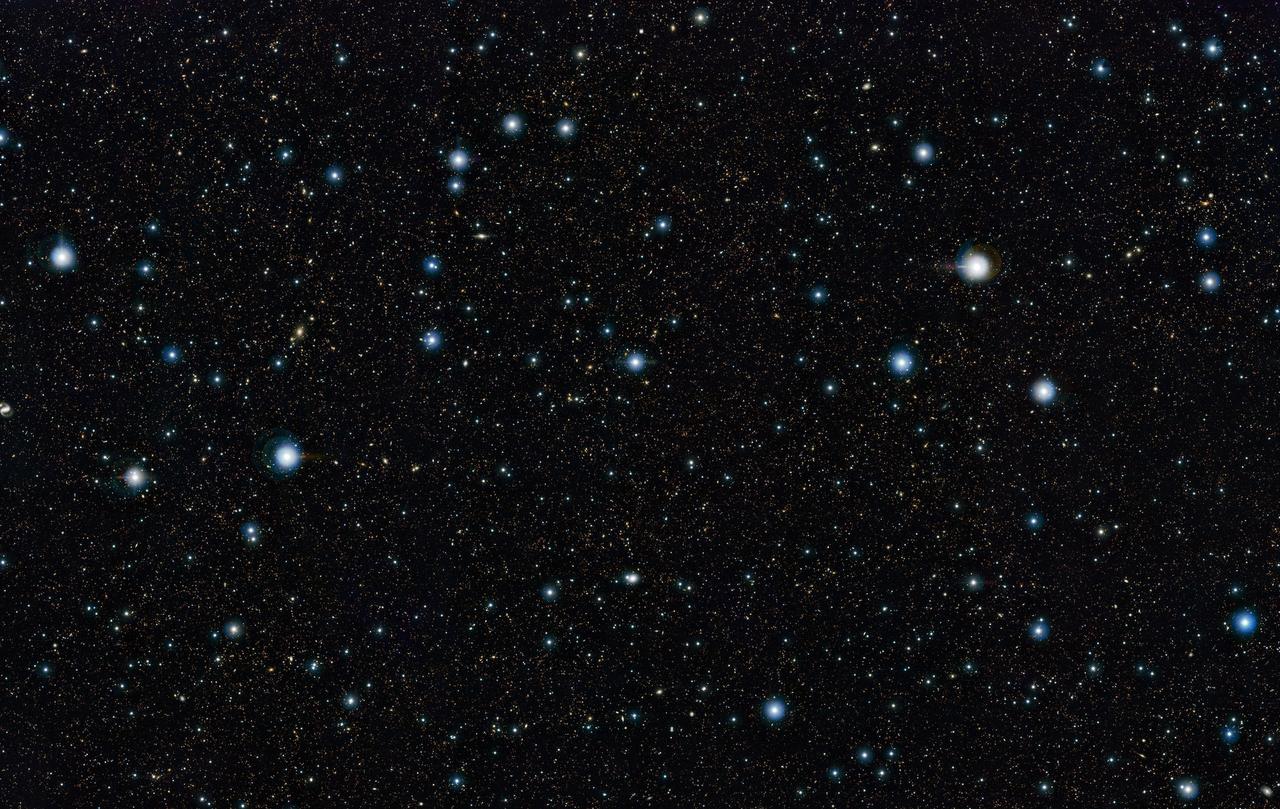 Na pierwszy rzut oka prezentowane zdjęcie nie wygląda szczególnie interesująco. Widzimy na nim zaledwie kilka jasnych gwiazd oraz nieco więcej słabszych obiektów. Ale co ciekawe – wszystkie z tych słabych punktów to w rzeczywistości nie gwiazdy naszej Galaktyki – Drogi Mlecznej, lecz odległe galaktyki zawierające miliardy gwiazd takich jak Słońce!