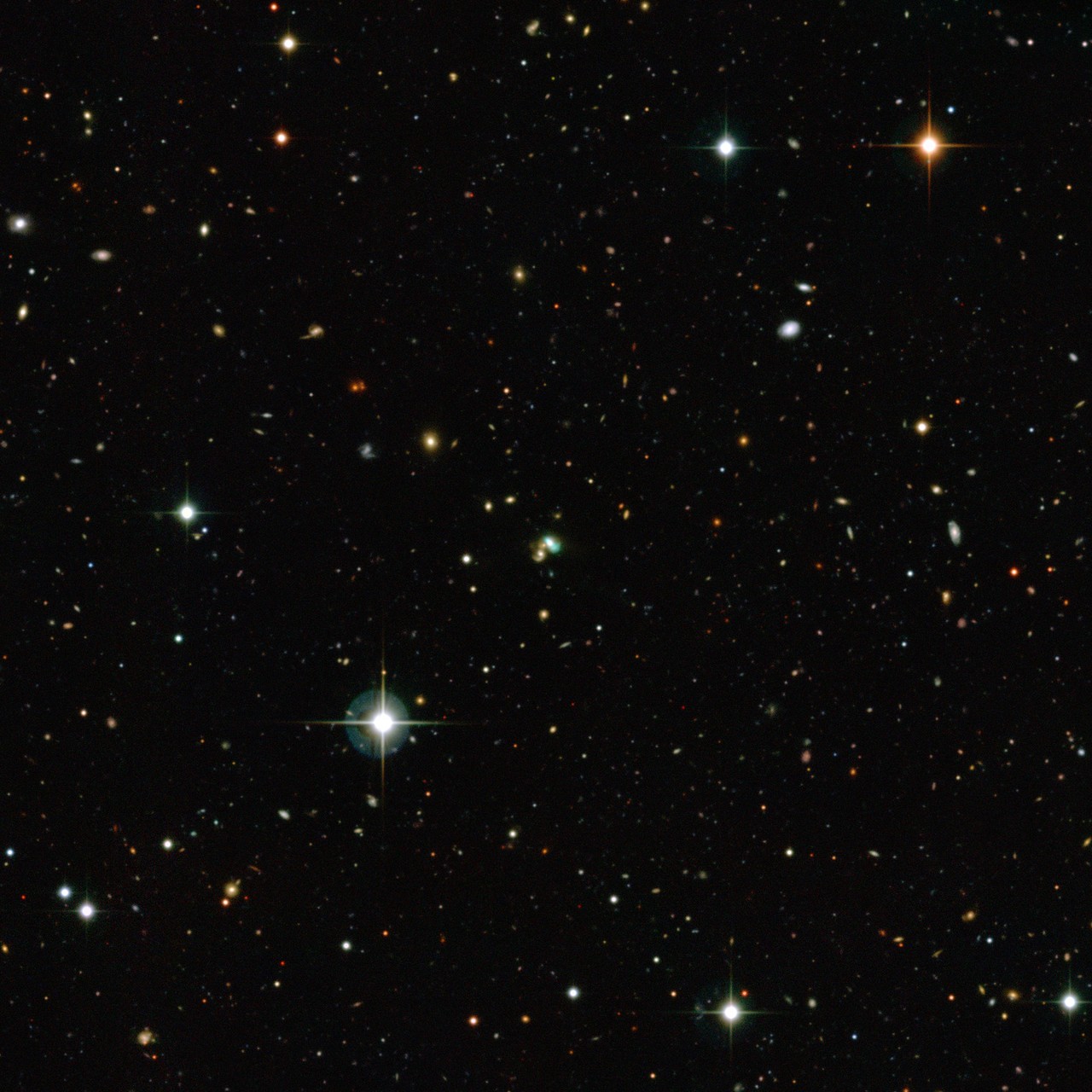 Całkiem niedawno, do listy rozmaitości dodano nowy rodzaj galaktyk. Nowo odkryte galaktyki są większe i jaśniejsze niż wszystko inne we Wszechświecie i gdyby to nie było wystarczająco interesujące, to świecą one jasnym zielonym światłem! To właśnie to spowodowało, że astronomowie nazwali je ‘zielonymi fasolkami’ (spójrz na małą zieloną kropkę umiejscowioną w środku powyższego zdjęcia - swoim kształtem przypomina on właśnie zieloną fasolkę).