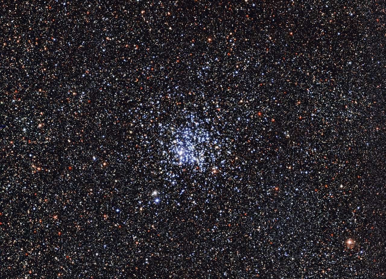 Имали ли сте късмета да видите ято патици, които се приготвят да отпътуват към места с по-топъл климат за зимата? Пътуващи в група, те сякаш грациозно изпълняват някаква хореография. Обикновено тези патици се носят на около 300 метра над земята (такава е горе-долу височината на Айфеловата кула!). Но ако погледнем много, много по-високо, далеч над земната атмосфера, ще видим друго ято - звездния куп Дива Патица. За да видиш този куп, ще ти трябва или бинокъл, или телескоп, освен ако нямаш ястребови очи. Ще ти свърши работа и тази снимка! На нея е купът Дива Патица, видян през един голям телескоп в Чили. От разстояние, звездния куп изглежда като типичната формация, в която се подреждат патиците, когато отлитат на юг. (Макар че ако увеличиш снимката, тази форма ще се размива.) Уви, звездите в този тип куп не са здраво свързани и е нужно съвсем малко да бъдат разпилени. Понякога в тези купове има по някоя непослушна звезда, която буквално изхвърля други звезди навън, а друг път звездите могат да бъдат издърпани от силната гравитация на звезда извън купа. Рано или късно, всеки звезден куп ще бъде дърпан, блъскан и обезформен толкова, че звездите му ще се разпръснат и купът ще изчезне. Но колко време ще оцелее един куп - това може да бъде от само няколко милиона години до стотици милиони години.