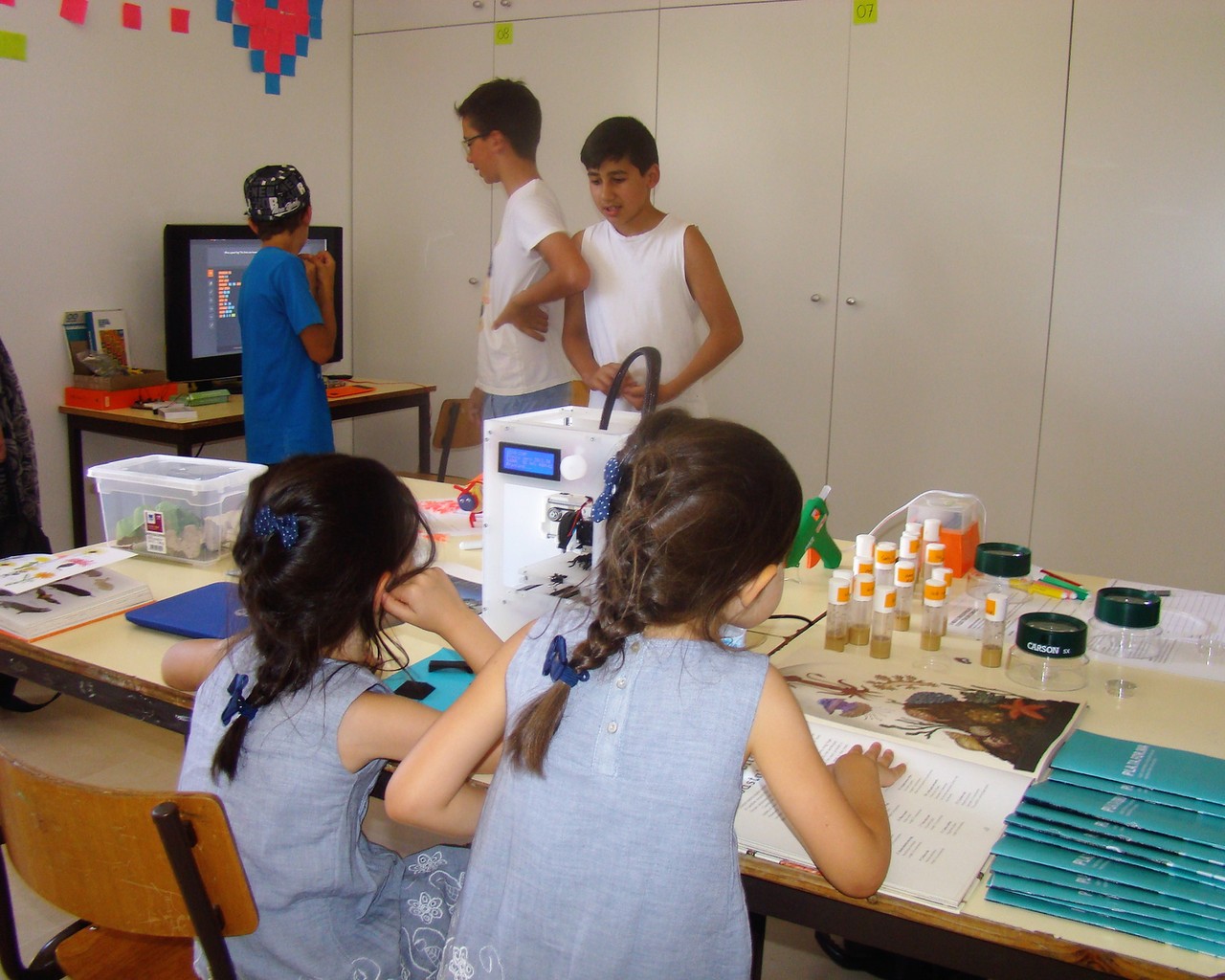 Bezoekers van de plaatselijke gemeenschap verkennen de makerspace van het Open Science Centre: Plataforma de Ciência Aberta.