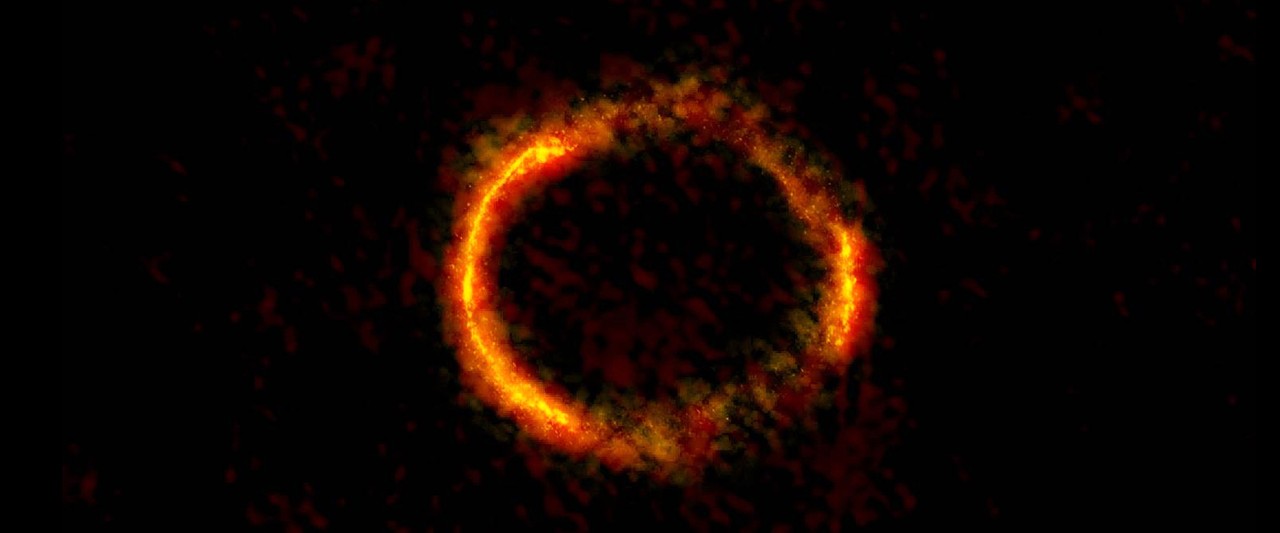 De zwaartekracht buigt licht van een ver sterrenstelsel in een ring