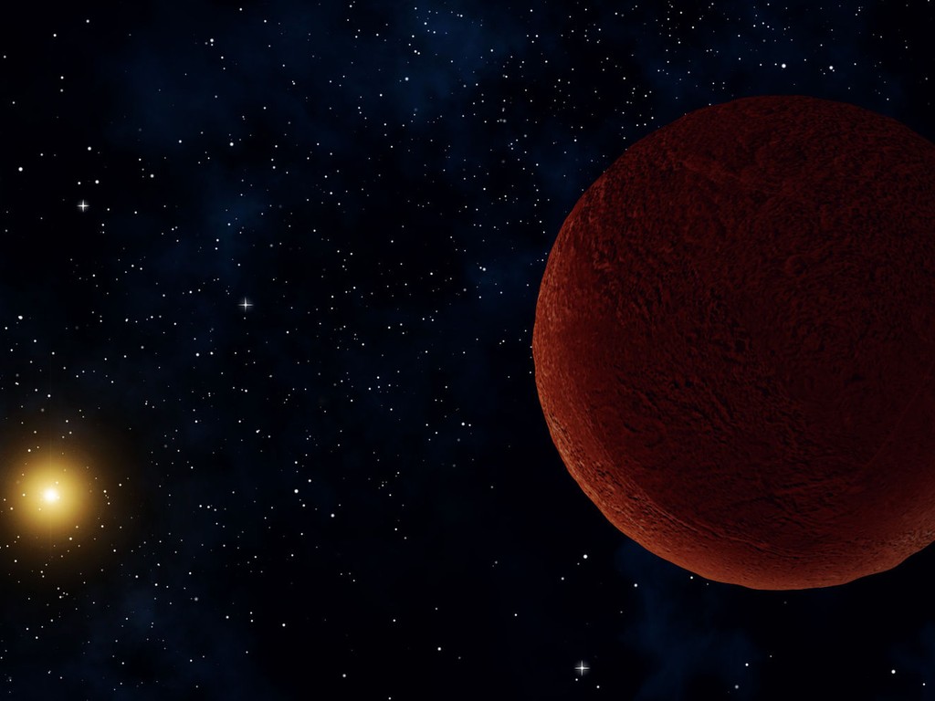 Een artiest maakte deze afbeelding, om ons een blik te geven op een nieuw lid van ons Zonnestelsel, genaamd DeeDee. DeeDee is kort voor Distant Dwarf (Verre Dwerg), een object dat bijna 100 keer verder van de zon is dan de Aarde, en wordt misschien binnenkort de zesde Dwergplaneet van ons Zonnestelsel!
