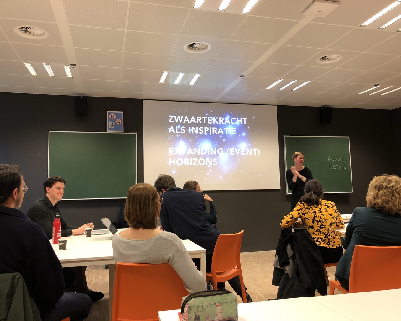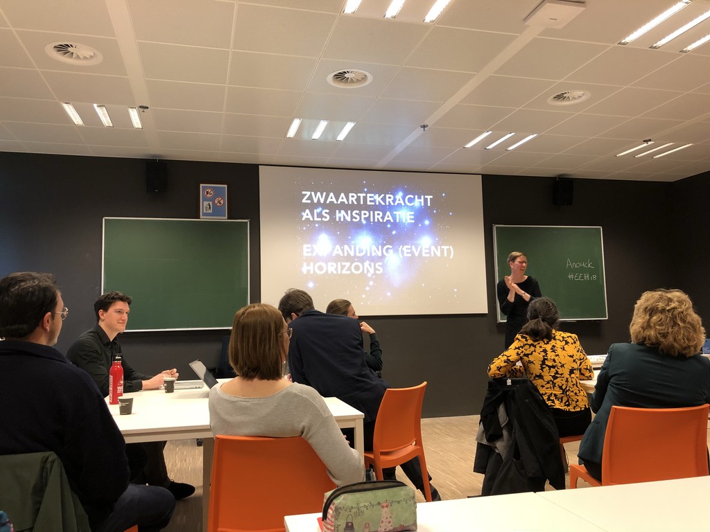 Zwaartekracht als inspiratie tijdens het eerste evenement van het Expanding (Event) Horizons project aan Universiteit Leiden in 2018.