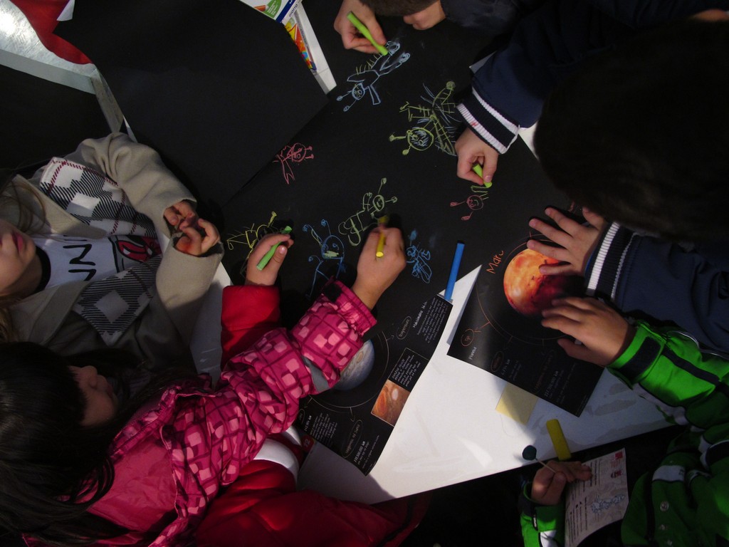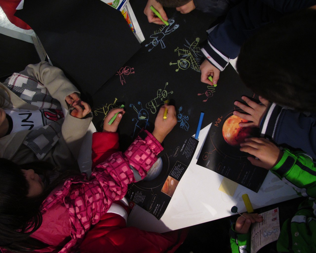 Servische kinderen ontwerpen hun eigen alien op het wetenschapsfestival in Belgrado (Servië).