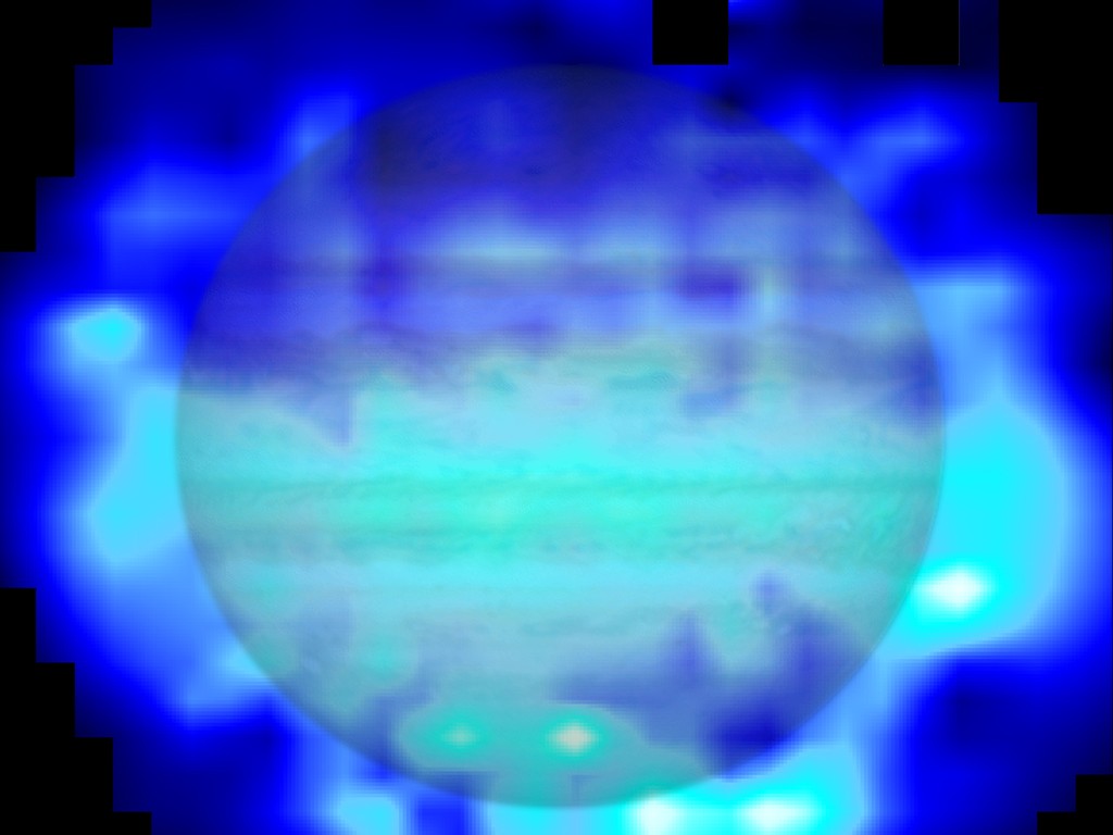 Kaart van het water in de bovenste laag van Jupiters atmosfeer, achtergelaten door komeet Shoemaker-Levy 9 toen die insloeg in 1994.