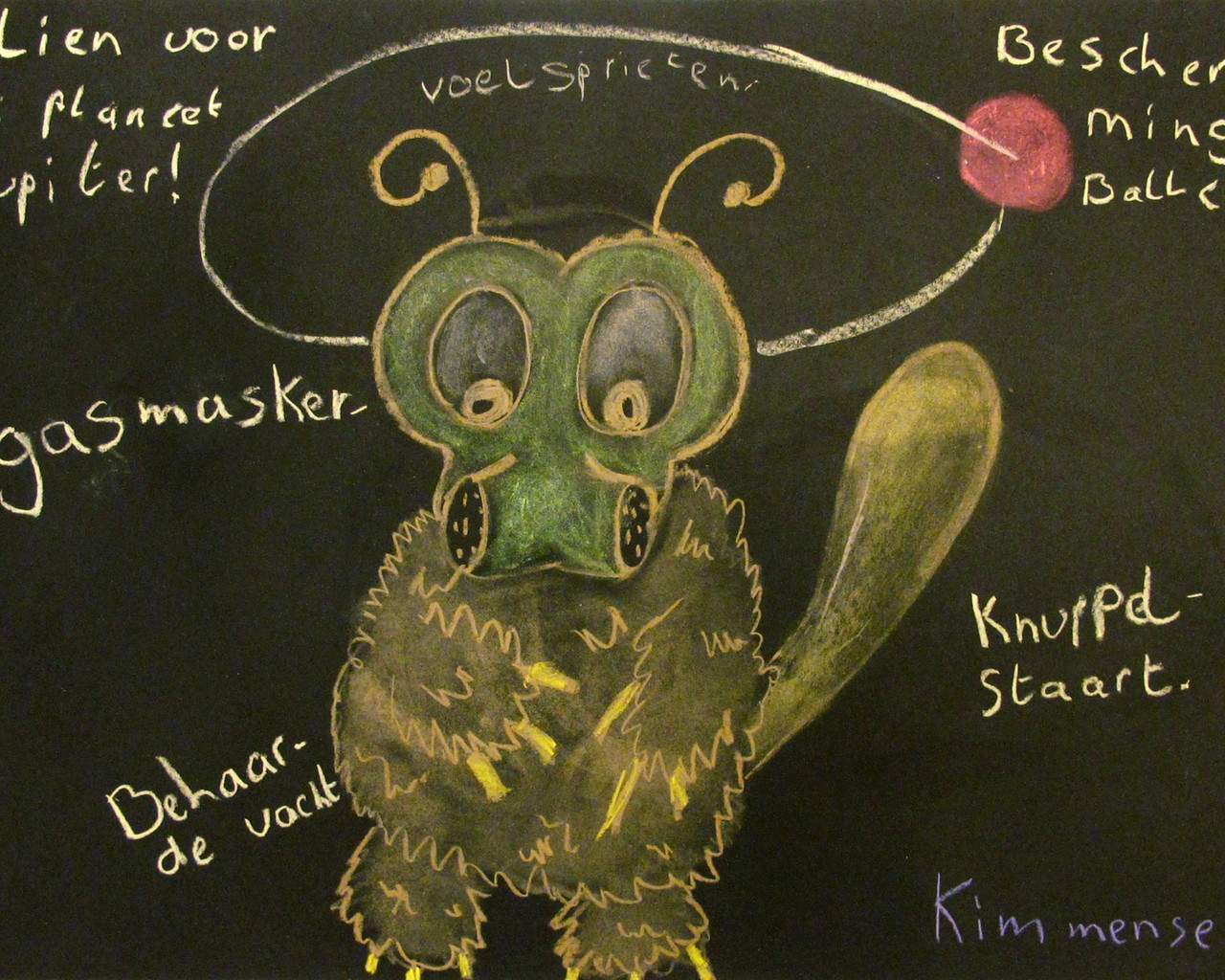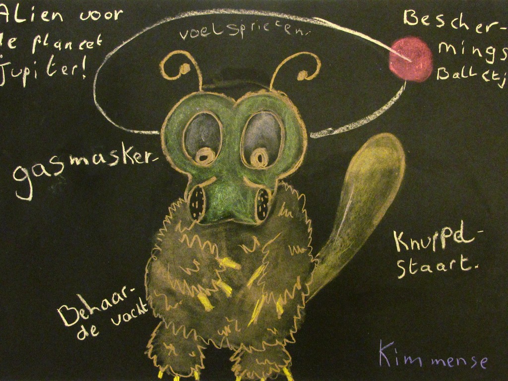 Winnaar van de 'Ontwerp je alien' workshop: Kim met haar Alien voor de planeet Jupiter