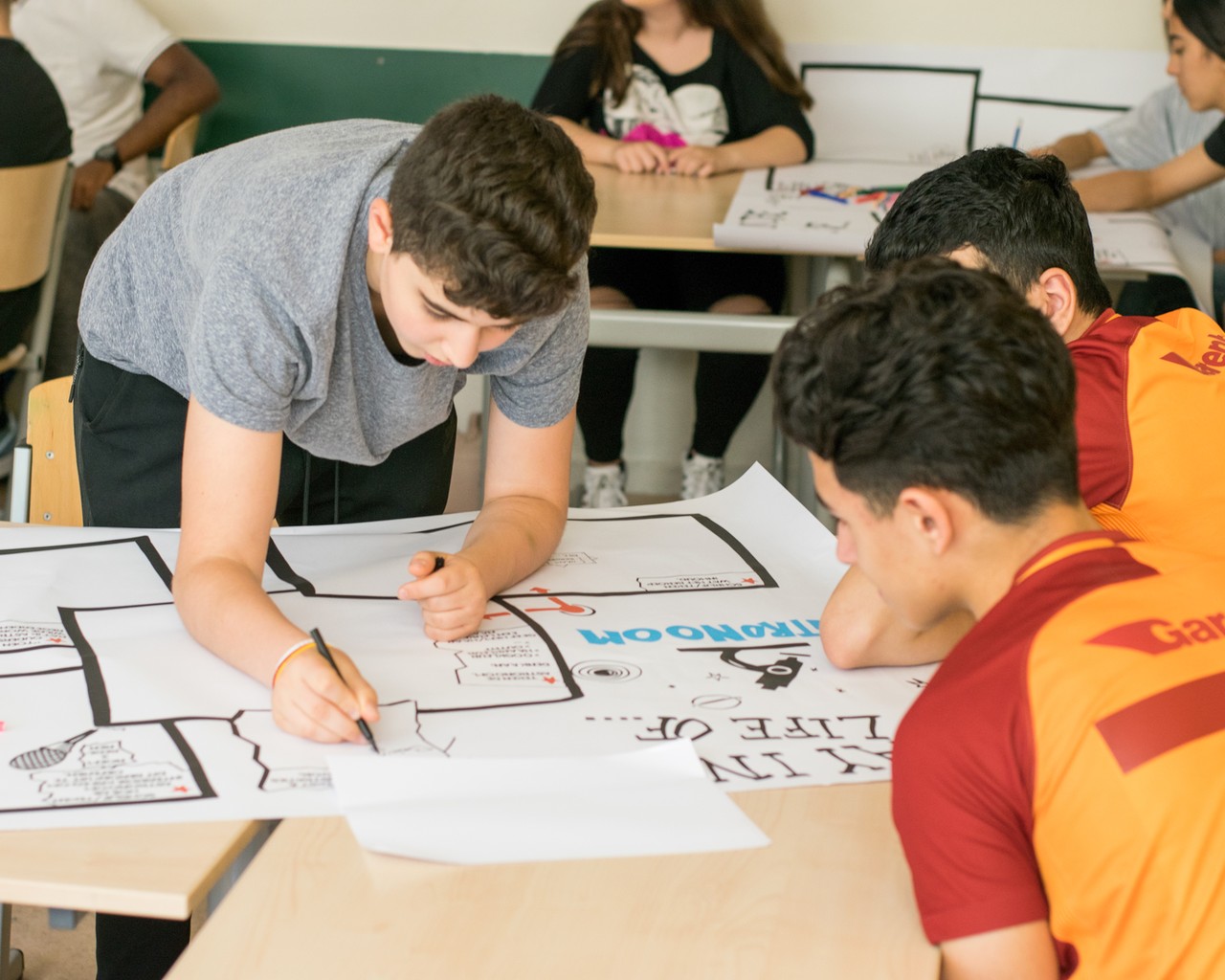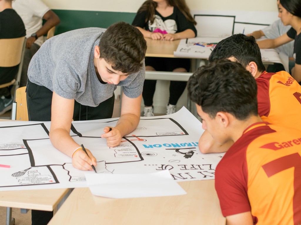 Leerlingen van Lyceum Kralingen tekenen wat hun beeld is van verschillende bètaberoepen.