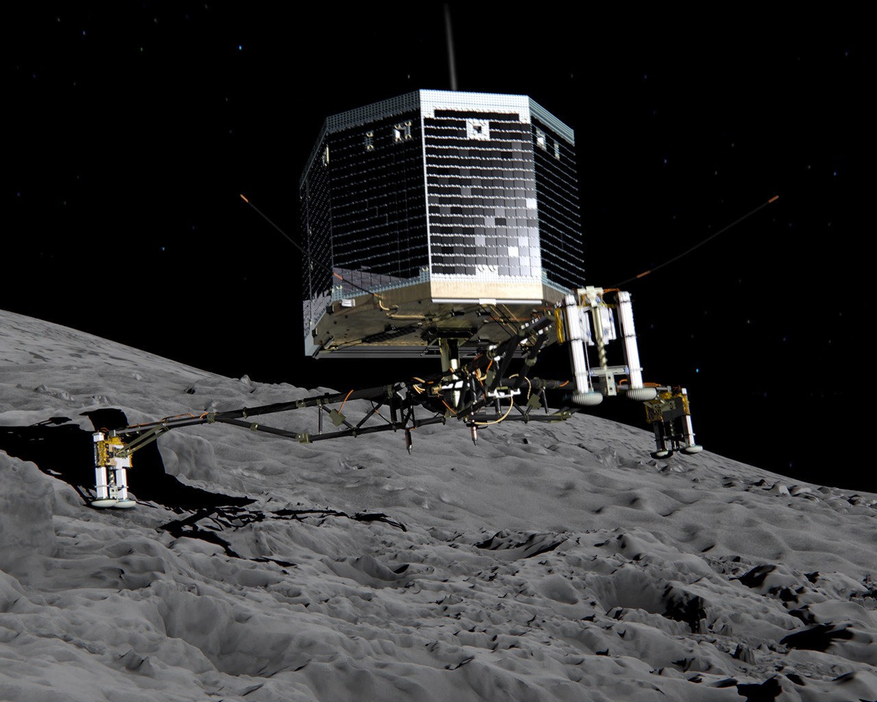 Impressie van het ruimtevaartuig Philae op komeet 67P/Churyumov-Gerasimenko.