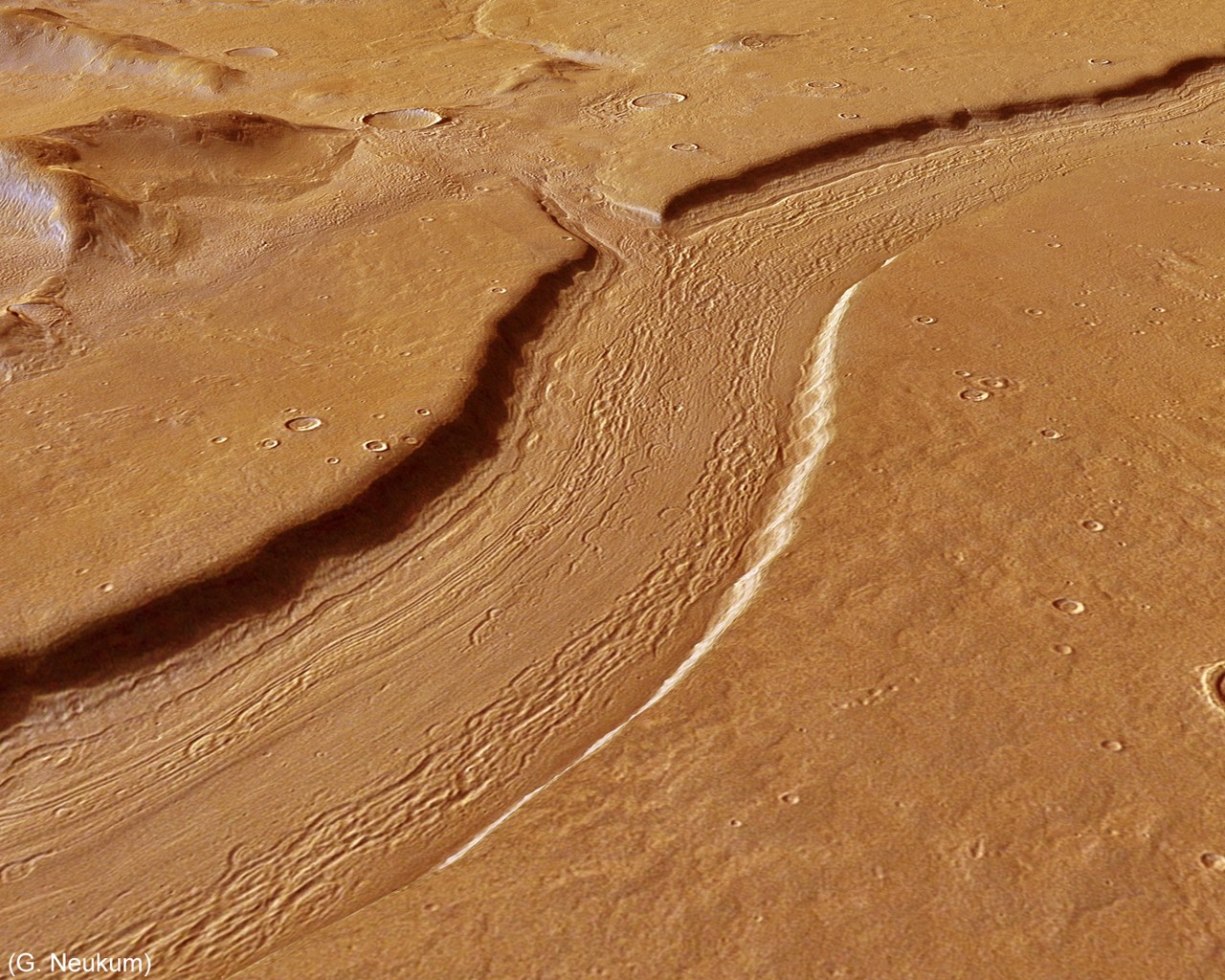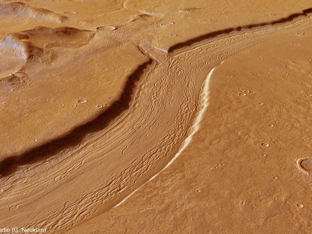 Deze geweldige foto’s zijn genomen door het ruimtevaartuig Mars Express, die in een baan rond Mars draait. Ze tonen een rivierbedding die over het oppervlak van de planeet loopt. Er wordt nu gedacht dat dit is uitgesleten door diep stromend water, ver in het verleden van Mars, miljarden jaren voordat de mens bestond!