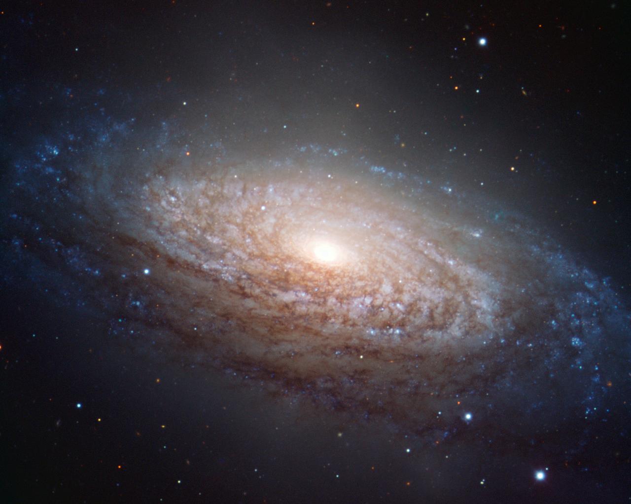 Op deze foto kun je zien dat de kleur van het sterrenstelsel in het centrum anders is dan in de rand. Het sterrenstelsel ziet er meer geel en oranje uit in het centrum (sterrenkundigen zeggen dat het “roodachtig” is), terwijl het blauw is in de buitenste gebieden. Dit komt door de kleuren van de sterren die zich in het sterrenstelsel bevinden. Oudere sterren zijn roder dan jongere sterren en leven in het centrum. Jonge sterren zijn blauw en leven verder naar buiten.