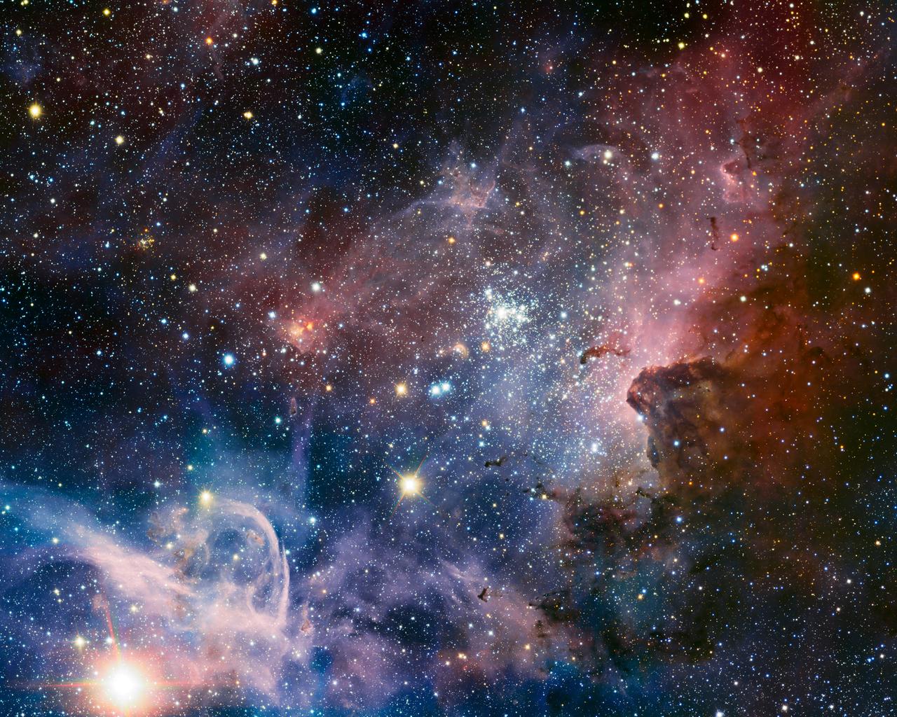 De afbeelding hierboven is van een groot stervormingsgebied, de Carinanevel. De foto is gemaakt met de infrarood-telescoop VLT. Op de foto zijn veel dingen te zien die astronomen nog niet eerder hadden ontdekt in deze wolk.