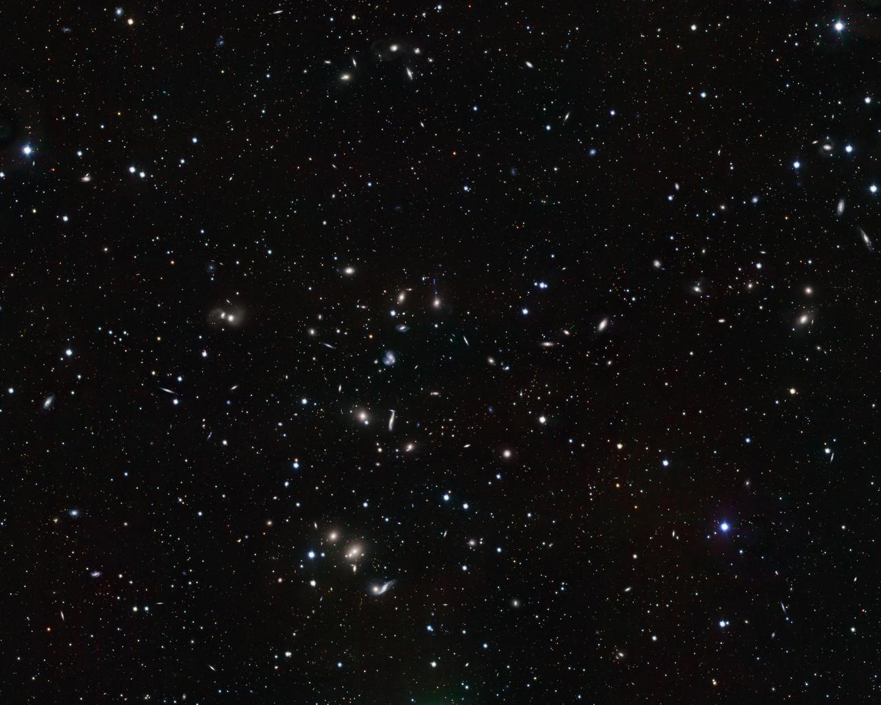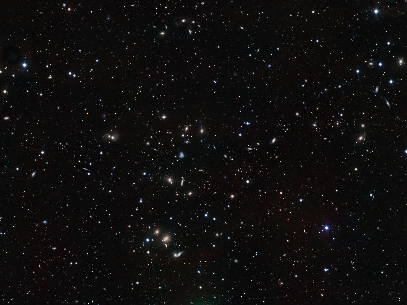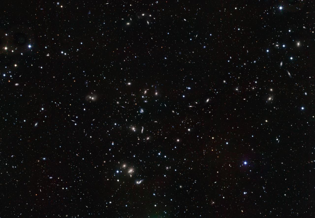 De foto die je hierboven ziet is gemaakt met de VST-telescoop. En op die foto zie je een hele graad van de sterrenhemel. De VST is een 2,6 meter telescoop, een grote dus! Toch lukte het om net deze telescoop honderden sterrenstelsels te fotograferen in een groot gebied aan de hemel. Het geheim van deze telescoop is een speciale, 268-megapixel camera.