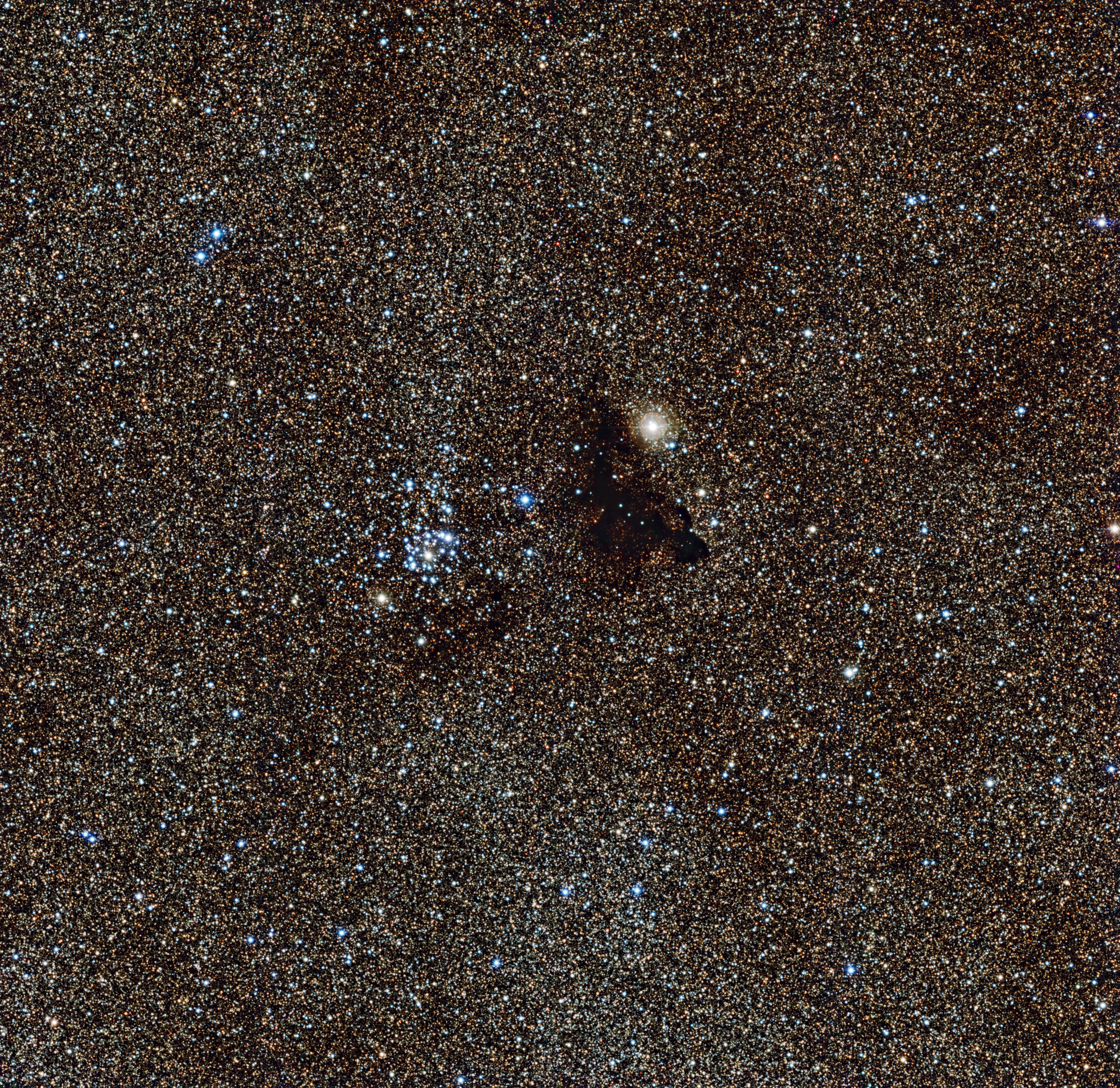 Wat een prachtige ESO-foto van een gebied met sterren! Maar wacht eens, het lijkt alsof iemand iets heeft gemorst in het midden van de foto. Tenminste, dat dacht de sterrenkundige die dit gedeelte van de sterrenhemel het eerst ontdekte. Hij drukte zich wel poëtischer uit: hij beschreef het als ‘een druppel inkt aan de heldere hemel’.
