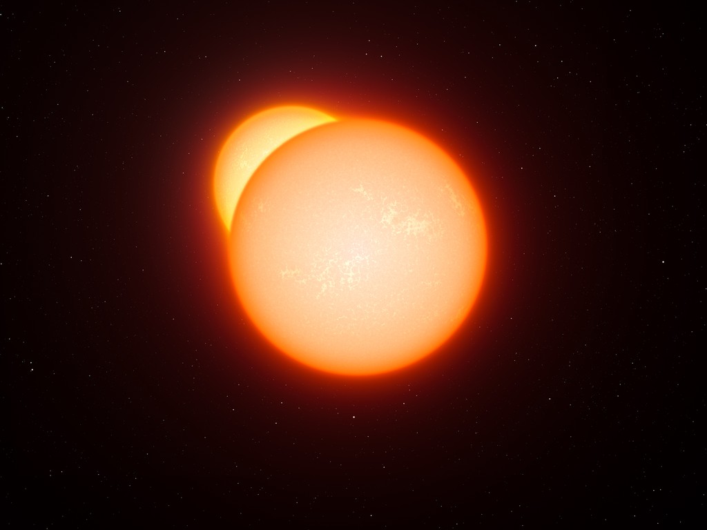 De afstand tot de Grote Magelhaense Wolk is bepaald door naar sterren te kijken die om elkaar heen draaien. We noemen dit ‘dubbelsterren’; op de afbeelding hierboven zie je een tekening van een dubbelster. Vanaf de aarde zien we regelmatig een van de sterren voor de ander langs bewegen. Elke keer dat dit gebeurt neemt de totale hoeveelheid licht van de dubbelster af. Door deze veranderingen in de helderheid nauwkeurig in de gaten te houden, kunnen astronomen van alles te weten komen: de grootte van de sterren, uit hoeveel materiaal ze bestaan en zelfs hoe ver ze van de aarde af staan.