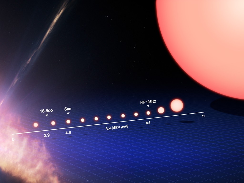 Op deze afbeelding zie je een paar 'tweelingsbroers' van de Zon; de jongste staat links en de oudste staat rechts.