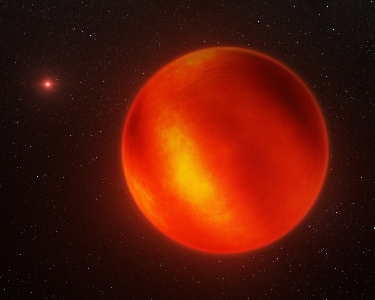 Met een slimme techniek konden astronomen een kaart maken van de donkere en lichte vlekken op het oppervlak van een bruine dwerg. Binnenkort kunnen we - net als op aarde - wolkenvelden zien ontstaan en weer verdwijnen. Hier zie je een artistieke impressie van een bruine dwerg.