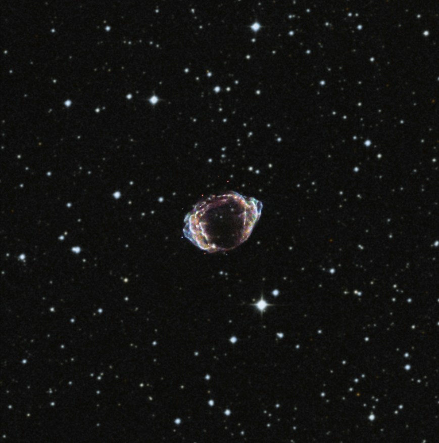 De meest recente supernova-uitbarsting in ons sterrenstelsel (de Melkweg) gebeurde iets meer dan honderd jaar geleden. Maar deze explosie was, helaas voor onze over-over-over-grootvaders, verborgen achter dikke wolken van gas en kosmisch stof, ver weg van de Aarde. Ze konden deze zeldzame gebeurtenis dus niet zien. Door dit kosmische stof is een groep sterrenkundigen pas in 2008 op de resten gestuit van een vernietigde ster, die je hier op deze foto kunt zien.