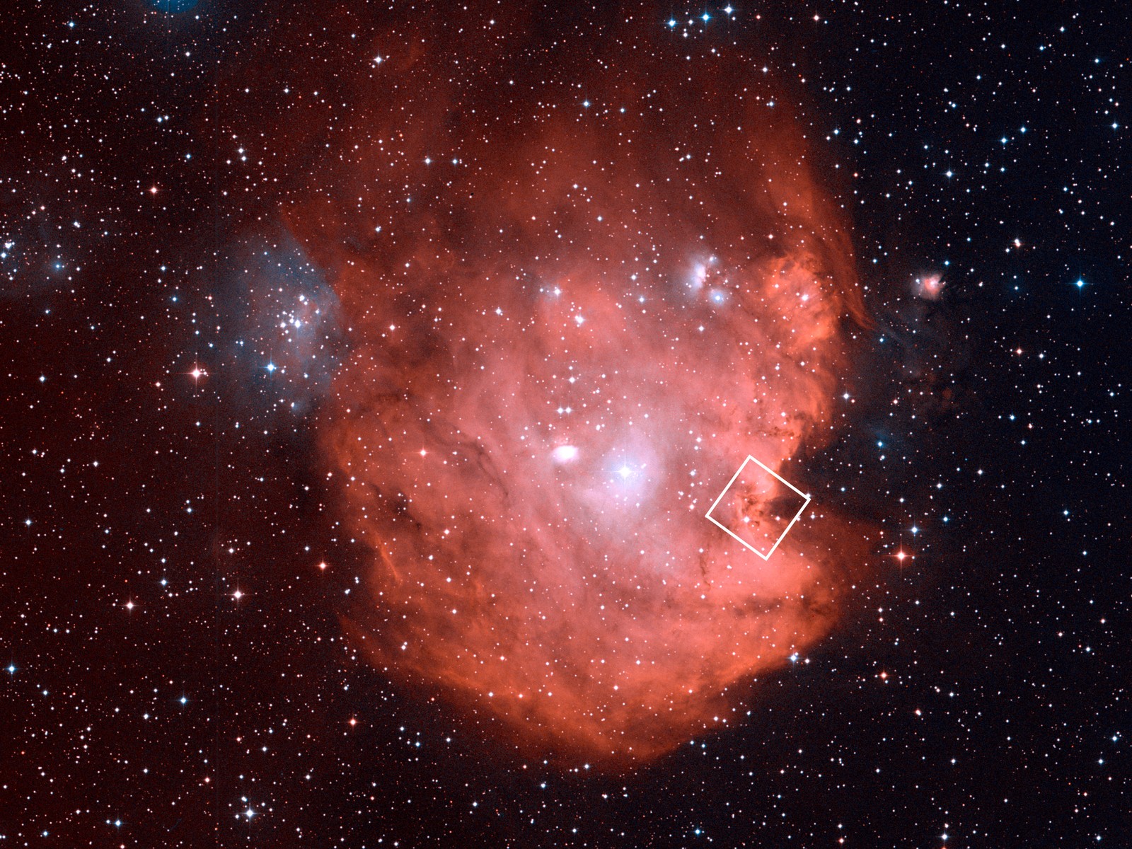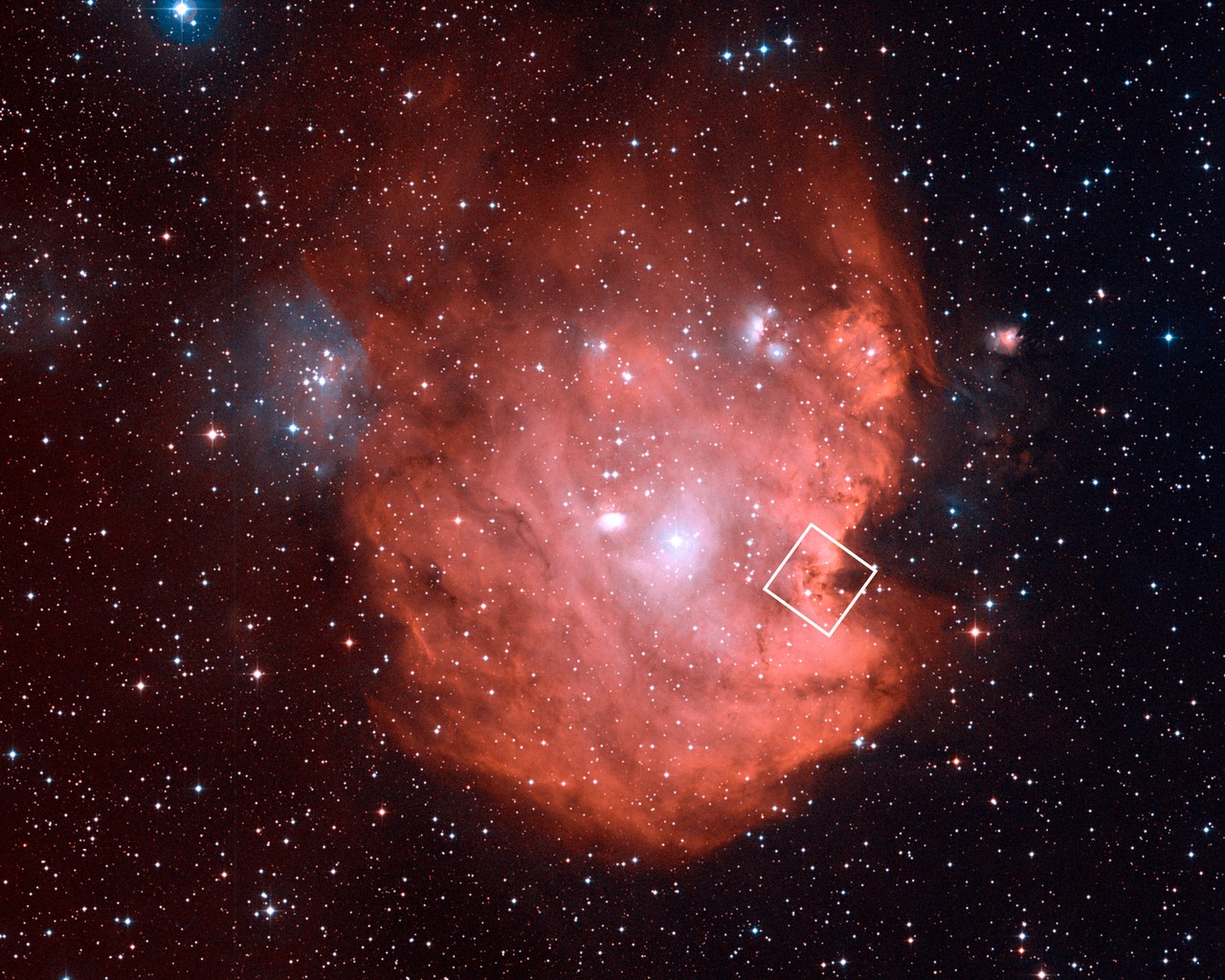De Apenkopnevel is een type kosmische wolk dat bekend staat als een ‘emissienevel’ – een nevel die licht uitzendt. Emissienevels gloeien meestal rood of roze. Dat komt door de grote hoeveelheden waterstofgas.