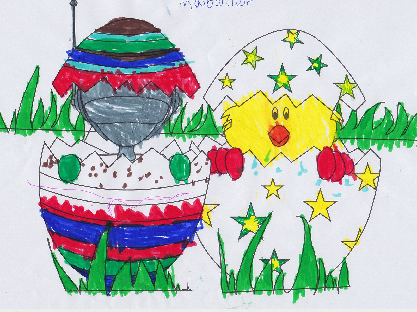 Een paaskleurplaat van NOVA, getekend door Madelief uit Hank.