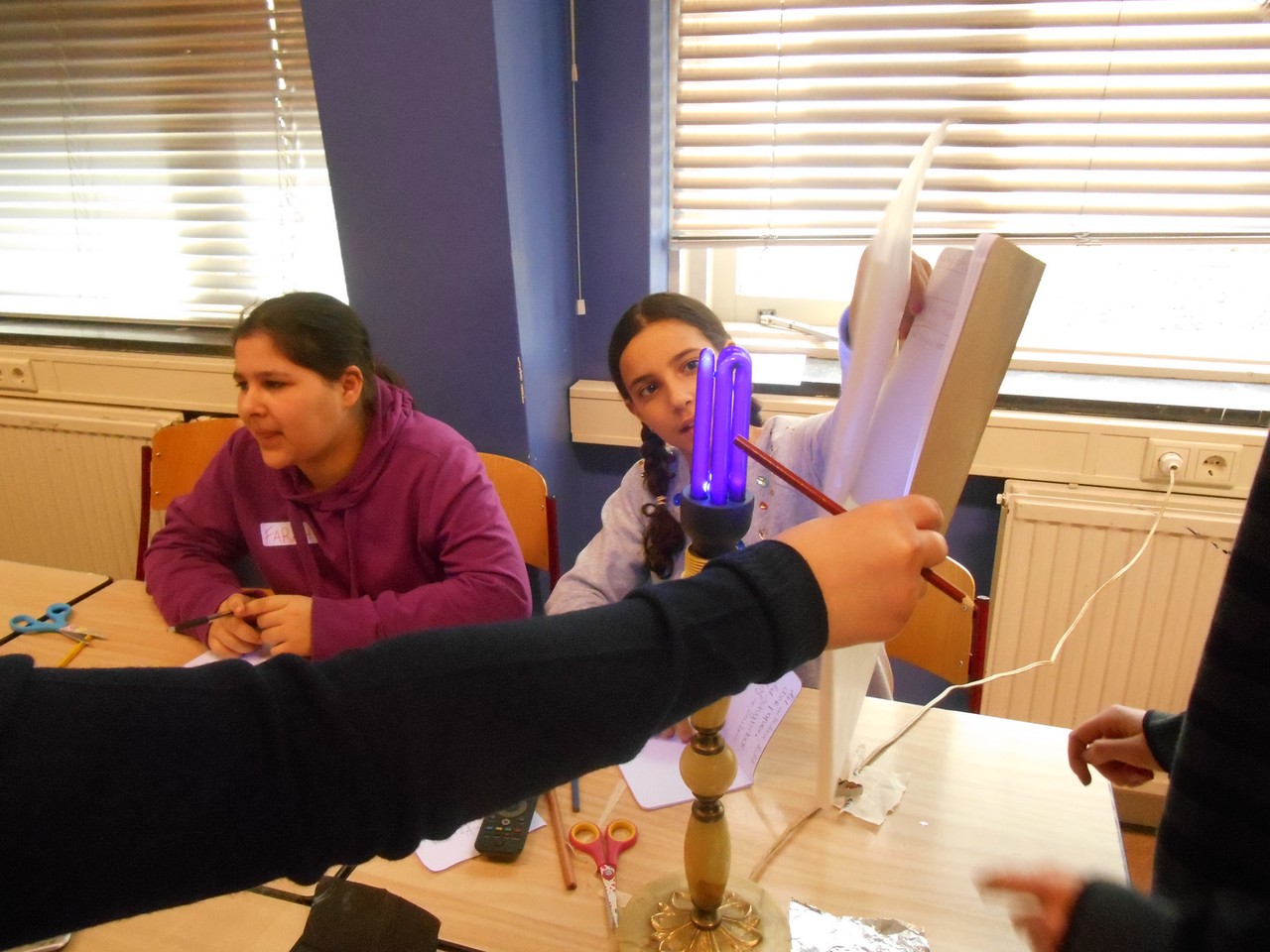 De absolute hit van de dag waren de UV-stiften in combinatie met UV-lampen, waarmee de kinderen hun creatiefste ‘onzichtbare’ kunstwerken produceerden. Zelfs hun bedankbriefjes voor het UNAWE-team en de begeleiders oogden op het eerste gezicht blanco, maar werden onder UV-licht zichtbaar. De boodschap was er niet minder duidelijk om; de kinderen hadden een geweldige dag!